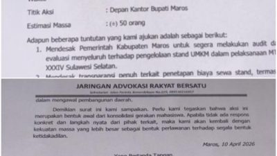 Maros,Sulsel – Jaringan Advokasi Rakyat Bersatu (JARB) secara resmi mengumumkan rencana aksi unjuk rasa melalui…
